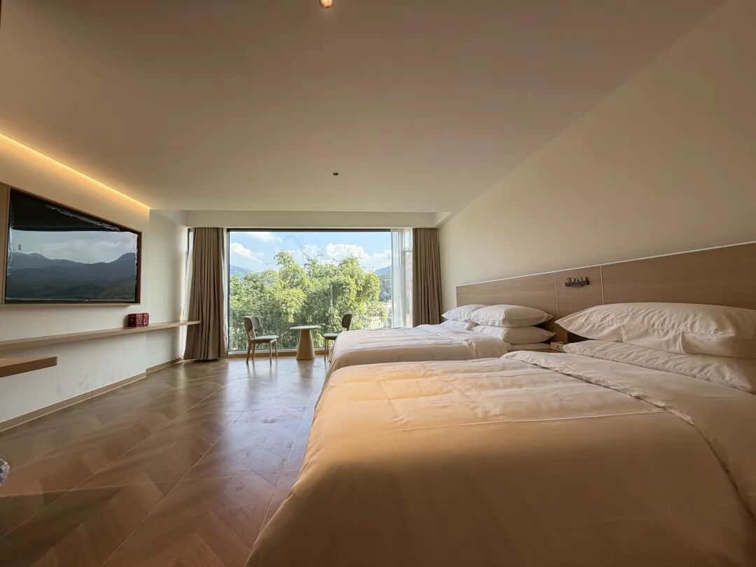 在广宁竹海大观景区里,藏着一家竹风雅苑。它宛如一位隐士,隐匿于万顷碧波之中。客房临江而建,与竹林朝夕相伴,建筑设计将竹元素发挥到极致,做到推窗即是景。