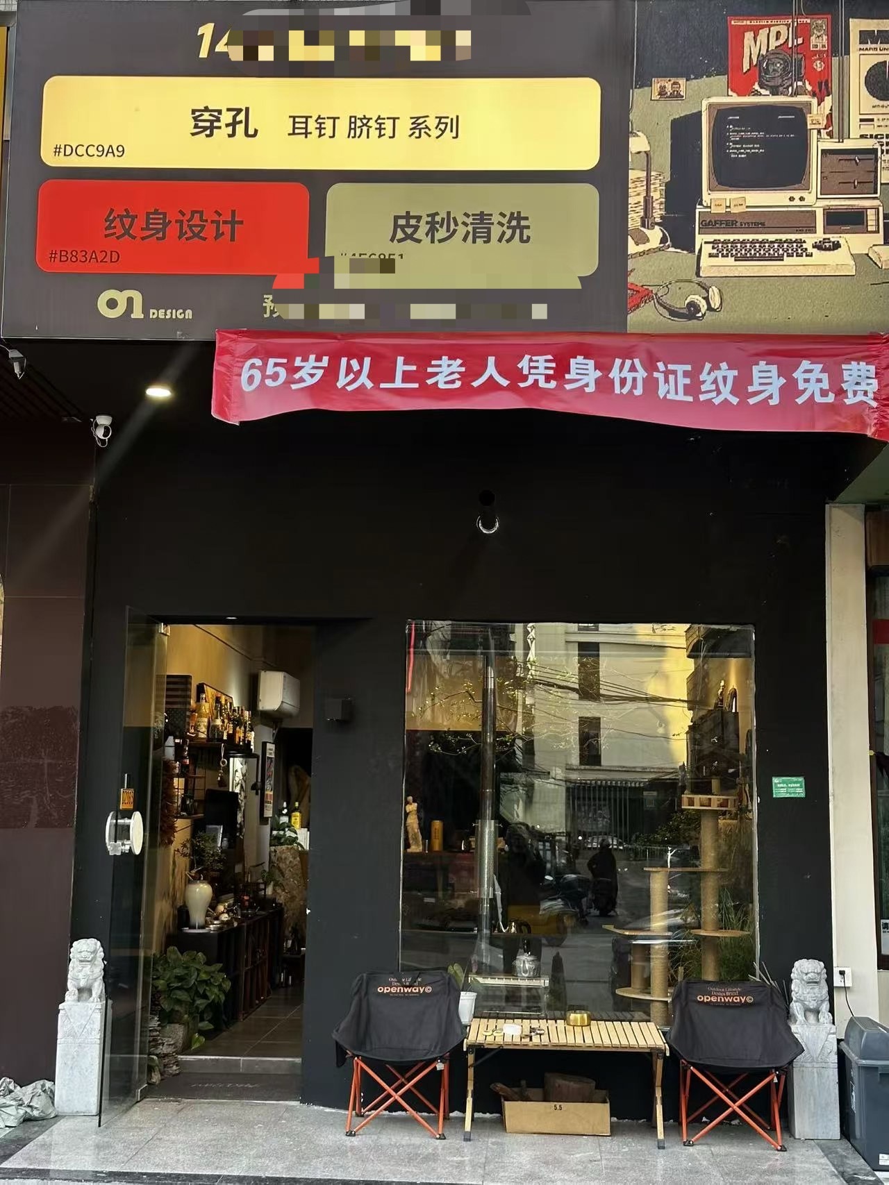 说干就干。3月17日,潘杰在店门口拉起一条广告:“免费给65岁以上老人文身”。这条广告引来了不少人的好奇。舆论也迅速发酵,有人觉得此举不妥,有人调侃这是“硬核防走失”。
