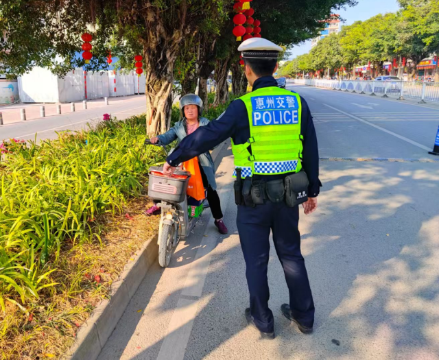 2月20日,大年初四上午,惠州市博罗县公安局交管大队在辖区重点整治路段持续开展电动自行车、摩托车专项整治行动。